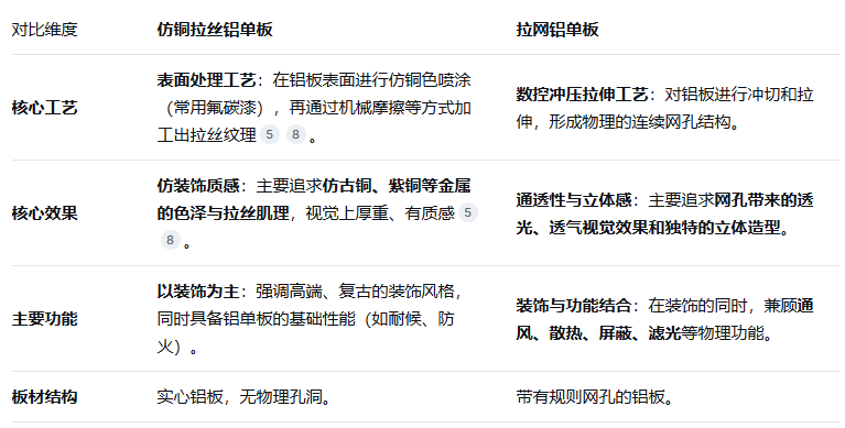 ?? 核心区别:仿铜拉丝 vs. 拉网铝单板